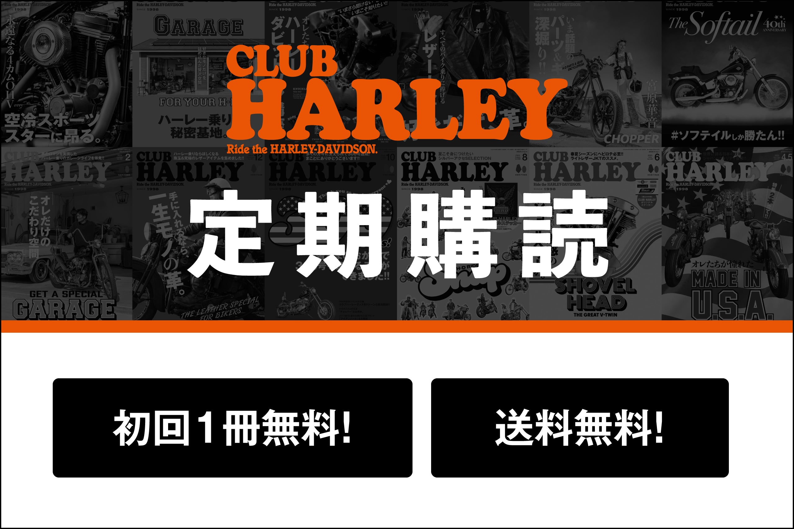 雑誌『CLUB HARLEY(クラブハーレー)』の月額購読プランです。毎号送料無料でお届けいたします。初回の1冊無料キャンペーン中!