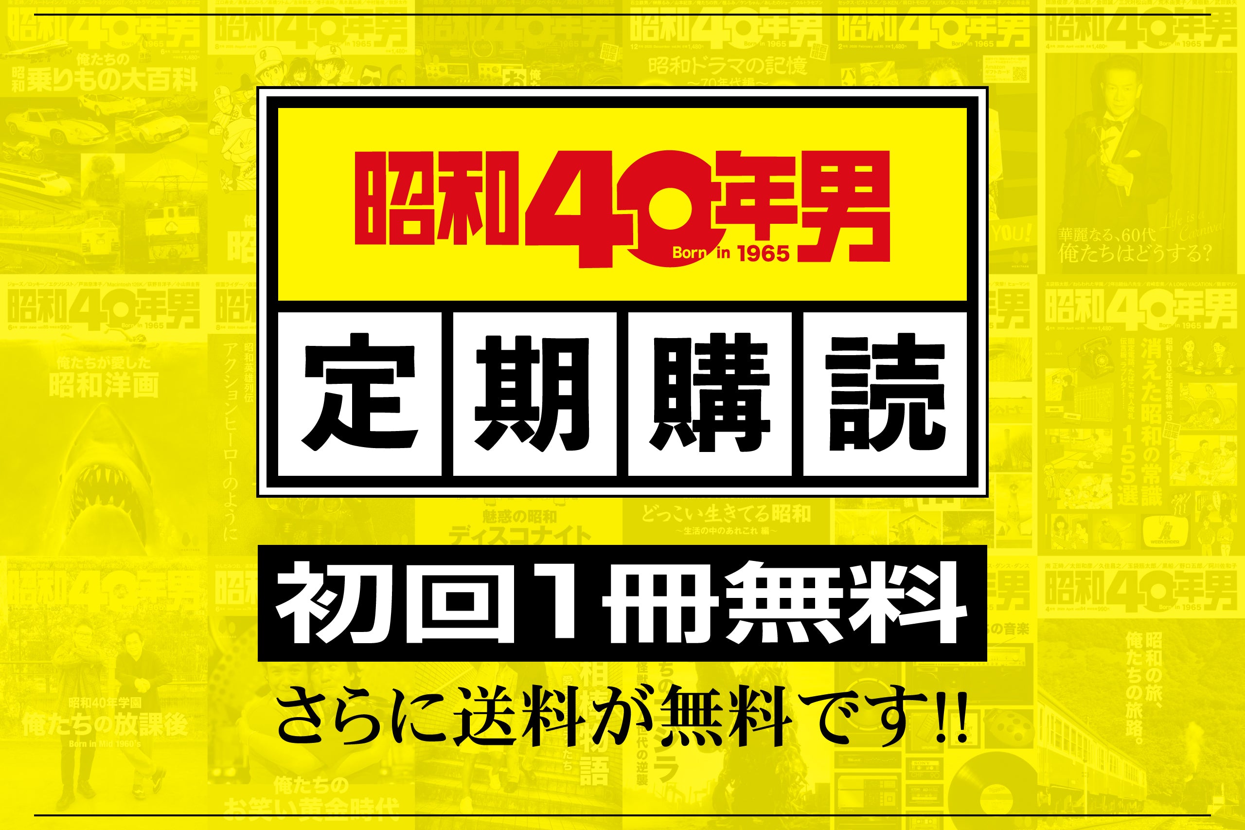雑誌『昭和40年男』の月額購読プランです。毎号送料無料でお届けいたします。初回の1冊無料キャンペーン中!