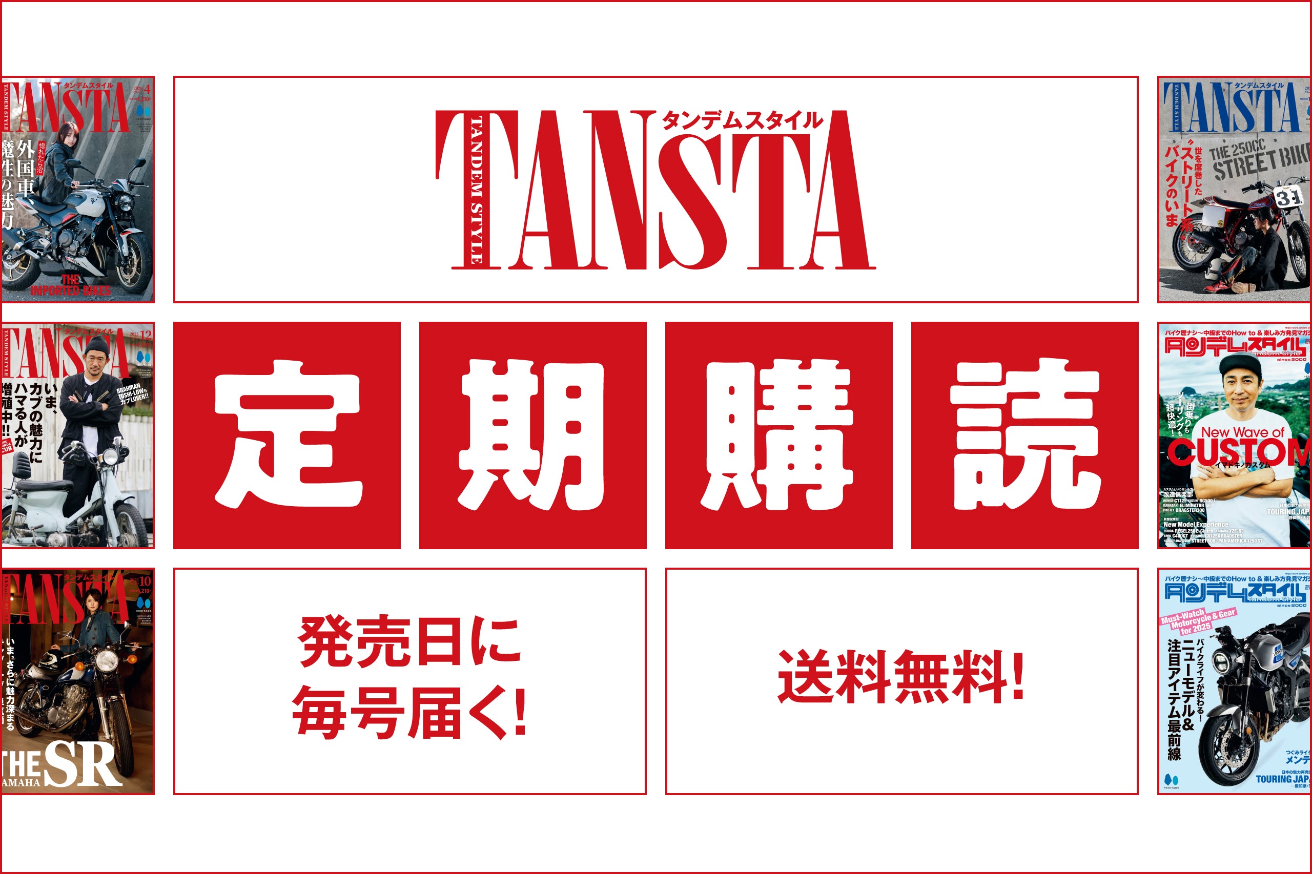 雑誌『タンデムスタイル』の月額購読プランです。毎号送料無料でお届けいたします。